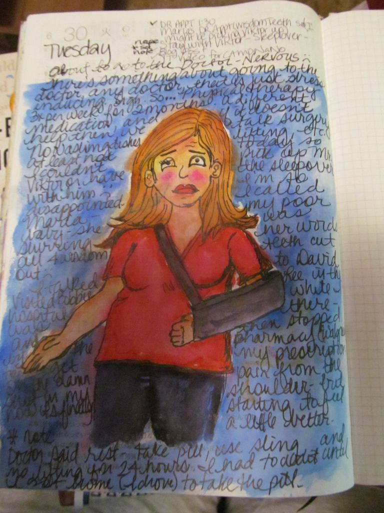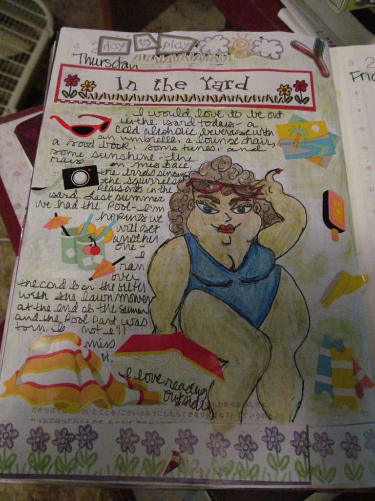Back in November or December of 2014 I fell down the rabbit hole of what some call Hobonichi or Fauxbonichi style journaling, or what others just call documenting your life in a journal. I fell in love with it. I was hooked. But I didn’t have much in the way of supplies. My wonderful daughter, who is an artist, gave me some supplies, like Prismacolor pencils and Prismacolor watercolor pencils and it wasn’t long before I was adding little drawings that I’d color in or watercolor (learning how to use the watercolor pencils was trial and error) on my journal pages. In February of 2015, I had surgery (a hysterectomy) and was bed/couch bound at first, which meant cradling the laptop in my lap to write was uncomfortable, but putting the journal on a pillow in my lap was not–and I delved into journal and art prompts, along with documenting my day in my journal.